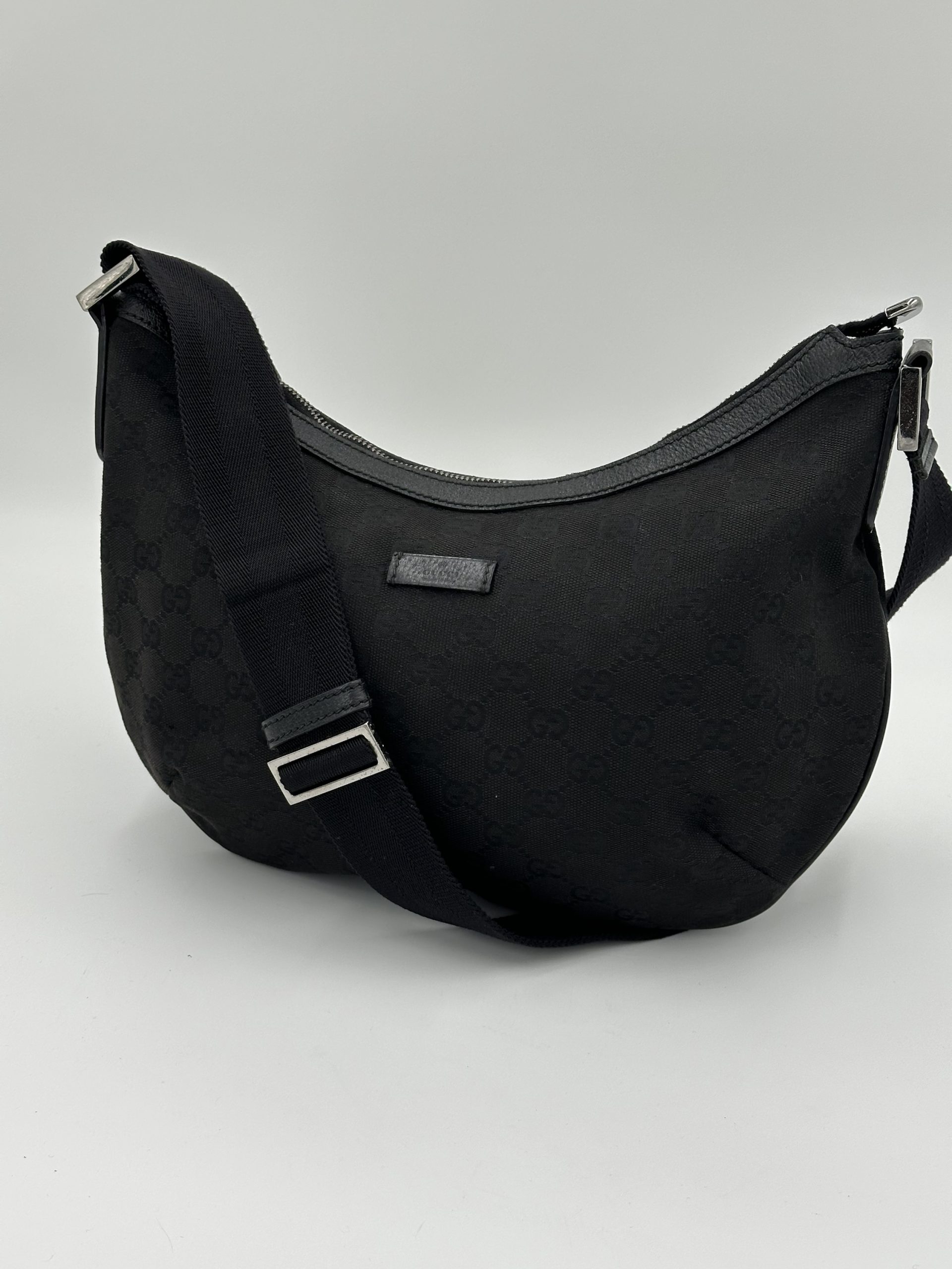 Den sorte GG Canvas Hobo Bag er en elegant og funktionel klassiker, der kombinerer luksus med praktikalitet. Den lette konstruktion og rummelige form gør den ideel til daglig brug, samtidig med at den løfter ethvert outfit med sit ikoniske Gucci-look.