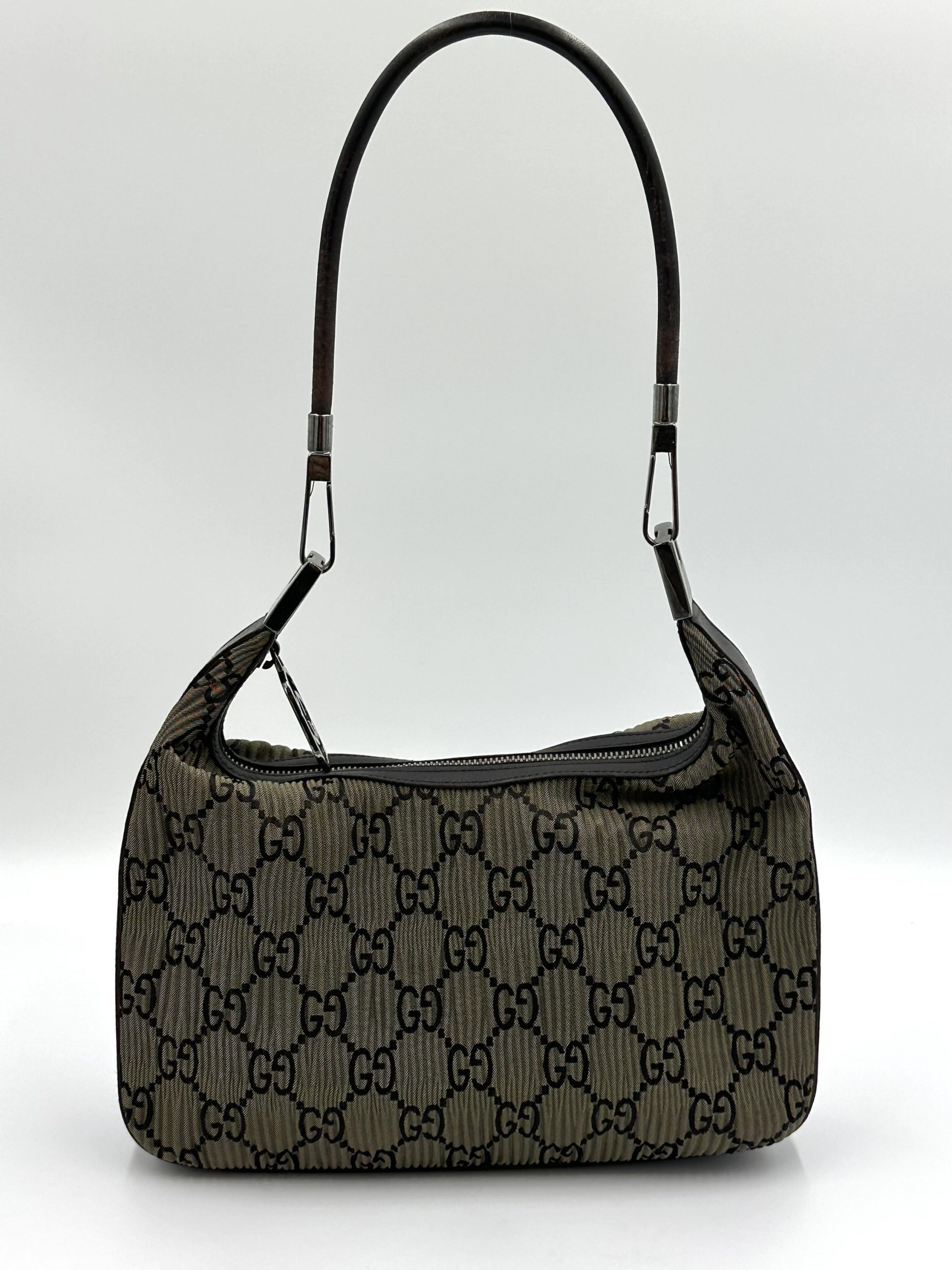 Den kompakte form og lette konstruktion gør tasken ideel som hverdagsfavorit, mens lynlåslukningen sikrer, at dine ejendele opbevares trygt. En diskret, men genkendelig Gucci-klassiker, der aldrig går af mode.
