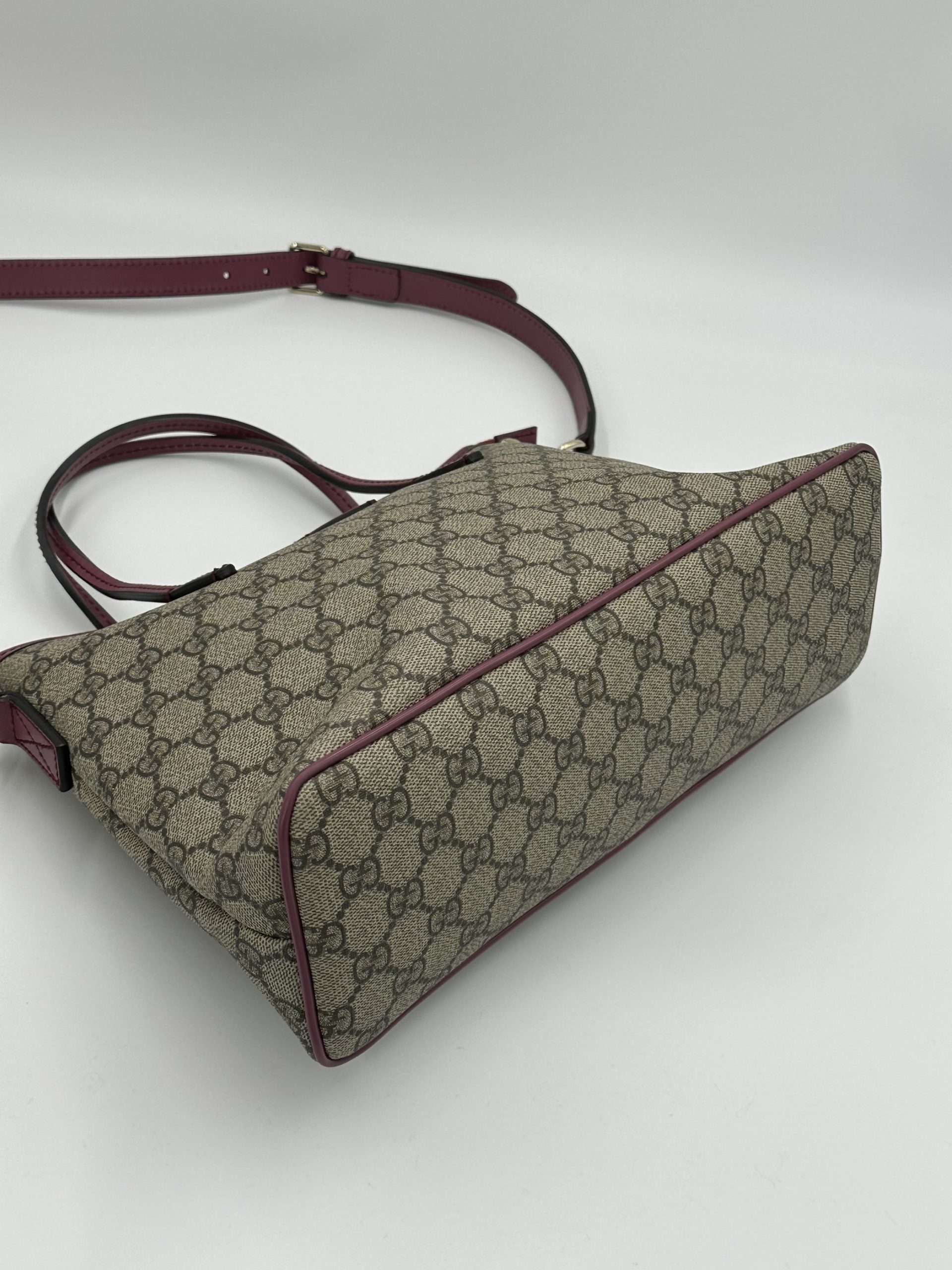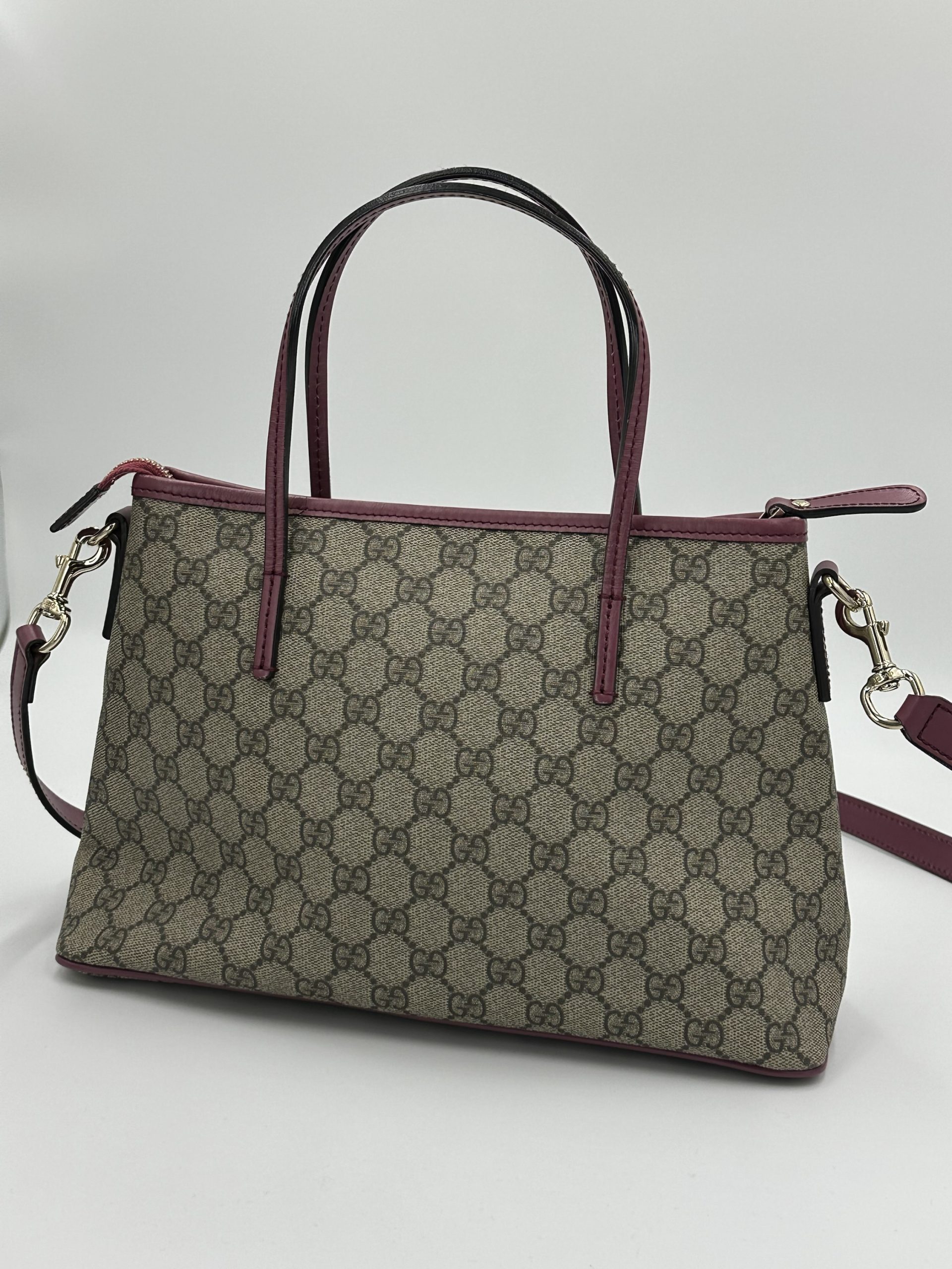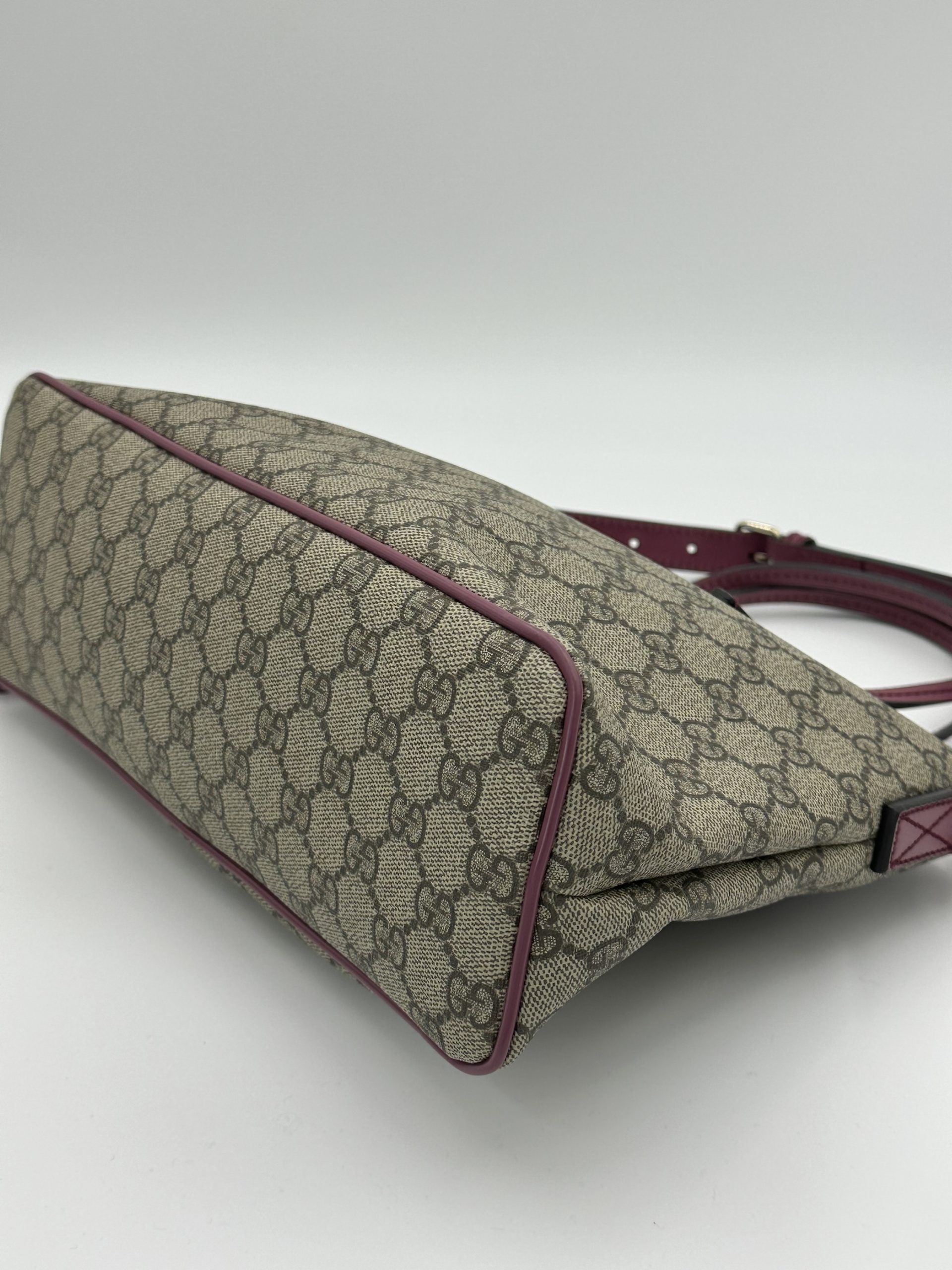 Vi elsker denne Gucci taske for dens perfekte balance mellem klassisk og moderne. Det ikoniske GG Supreme canvas giver et tidløst udtryk, mens de bordeaux læderdetaljer tilføjer en sofistikeret farvekontrast. Den er både rummelig og praktisk uden at gå på kompromis med elegance – en taske, der kan følge dig fra hverdag til aften og stadig føles eksklusiv.