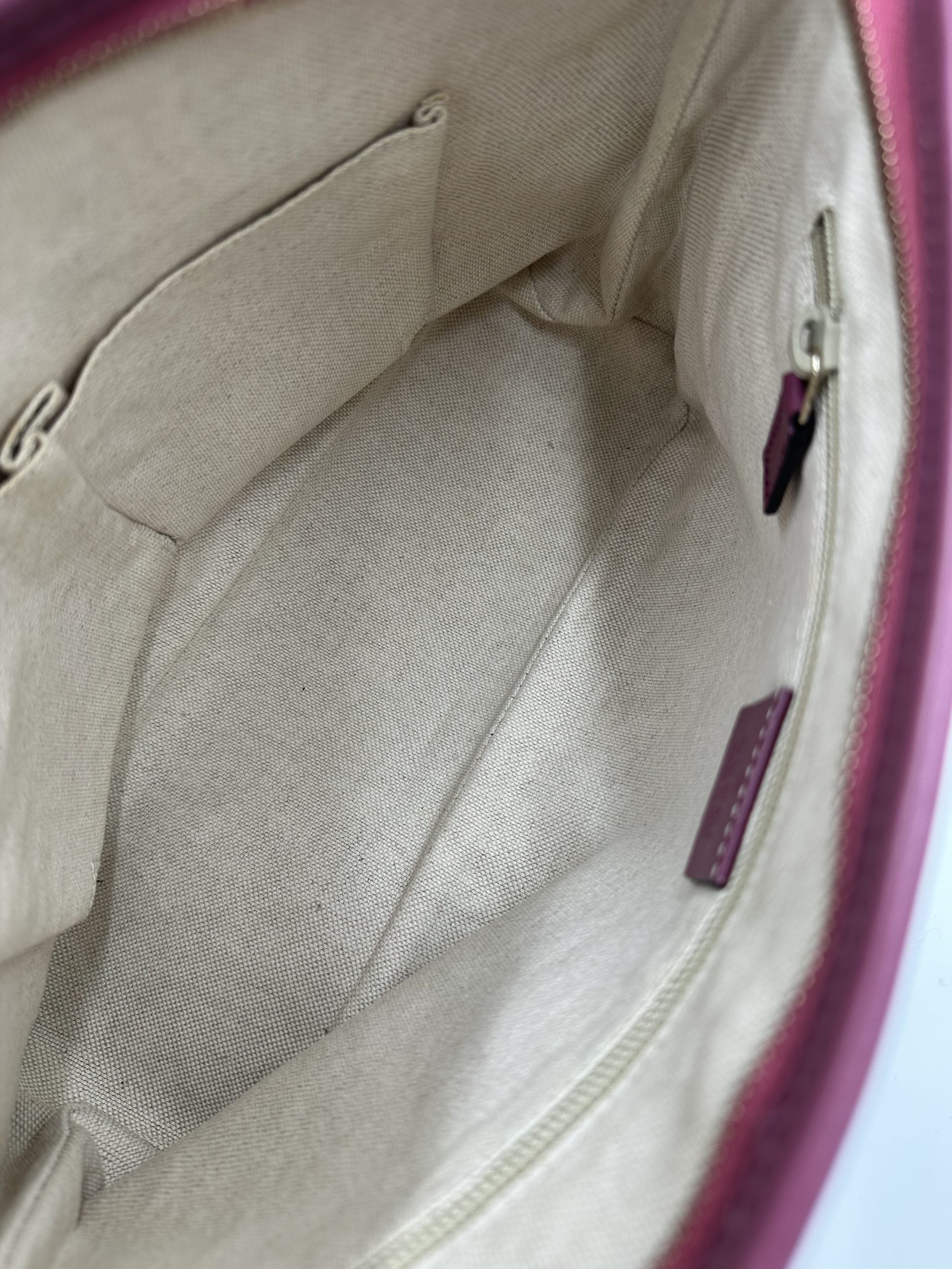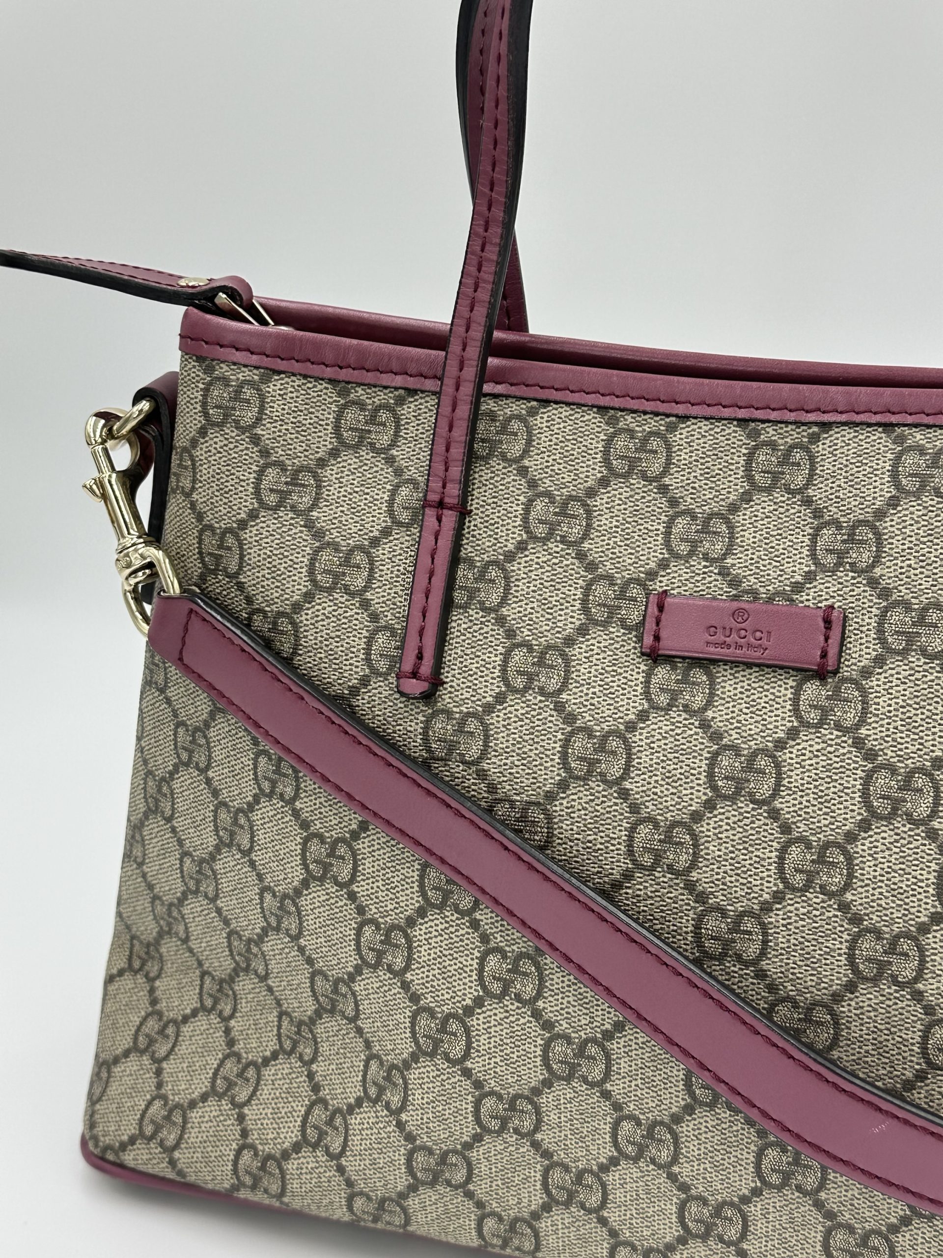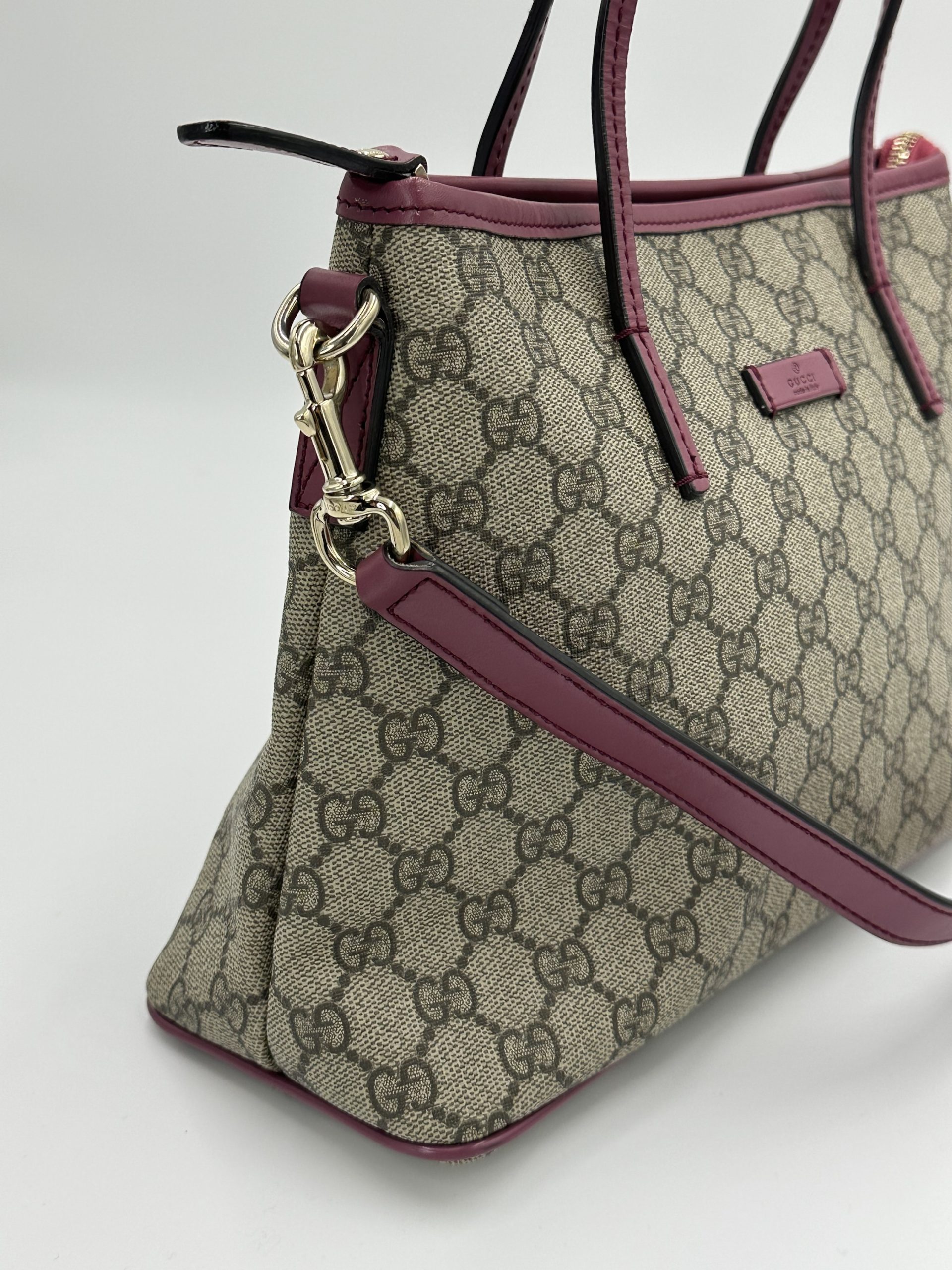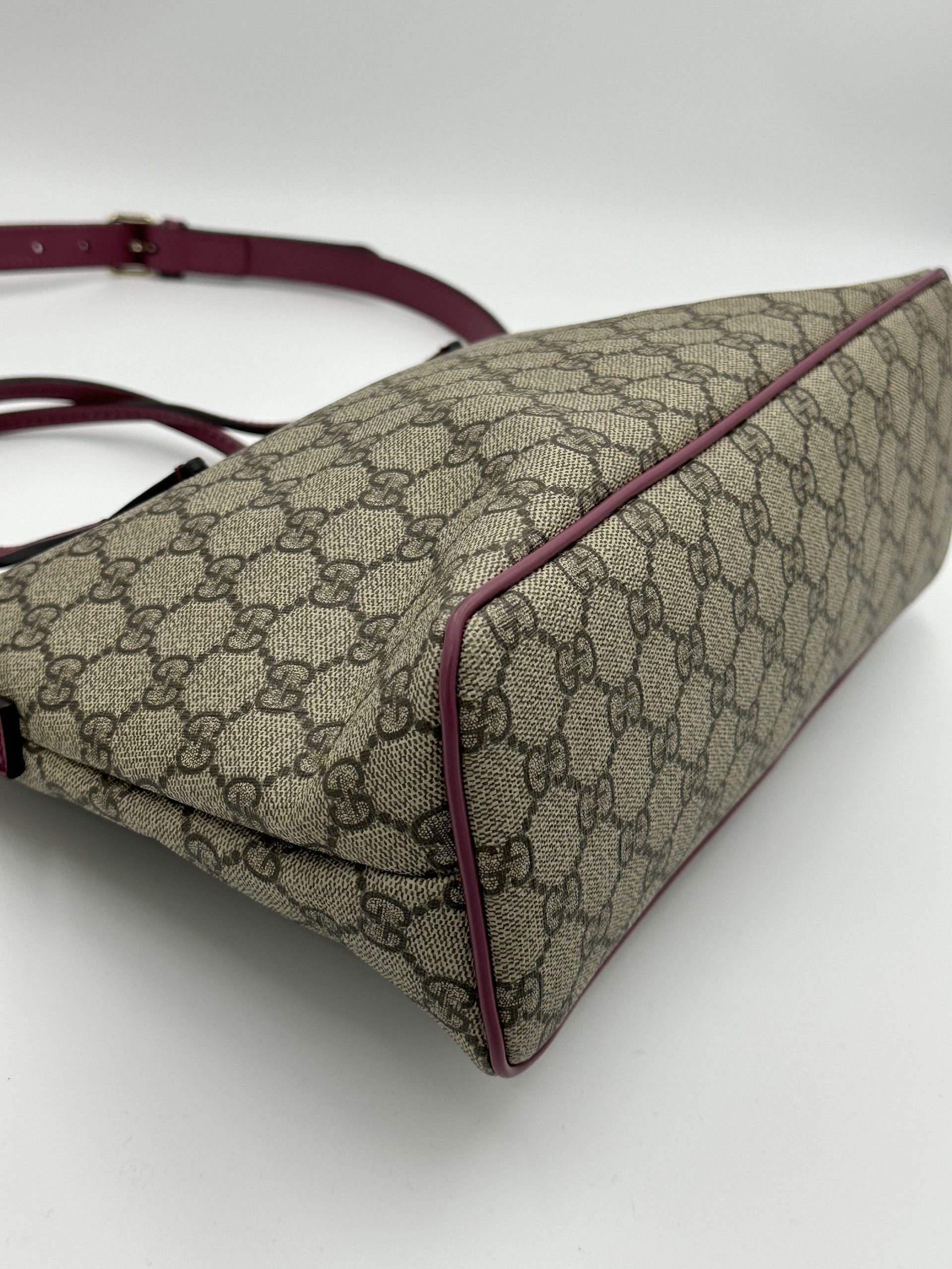 Vi elsker denne Gucci taske for dens perfekte balance mellem klassisk og moderne. Det ikoniske GG Supreme canvas giver et tidløst udtryk, mens de bordeaux læderdetaljer tilføjer en sofistikeret farvekontrast. Den er både rummelig og praktisk uden at gå på kompromis med elegance – en taske, der kan følge dig fra hverdag til aften og stadig føles eksklusiv.