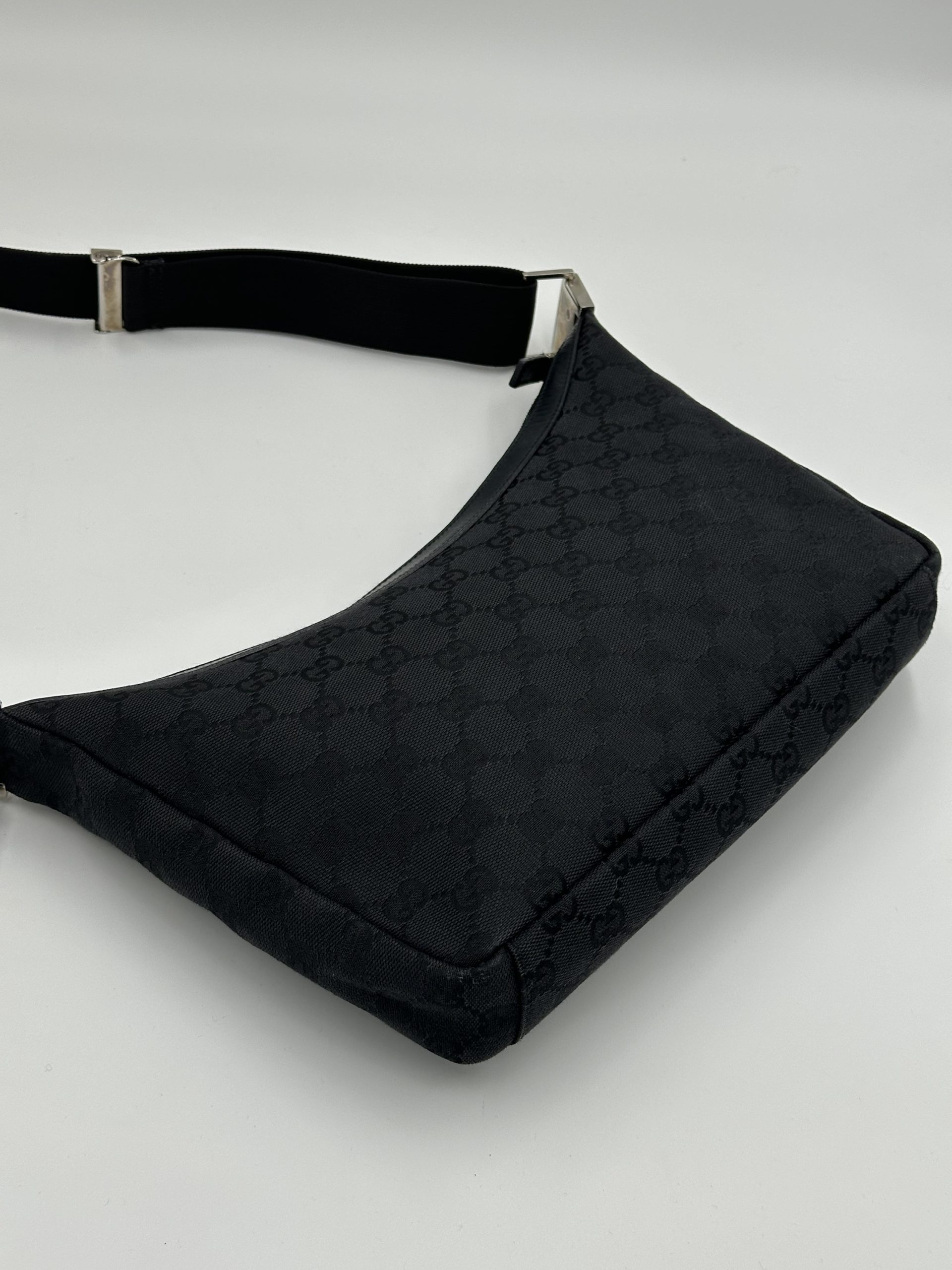 Denne taske kombinerer klassisk Gucci-DNA med et minimalistisk, moderne udtryk. Den lette canvas gør den behagelig at bære, mens den diskrete monogramtekstur giver et sofistikeret look — perfekt til både jeans og kjole.