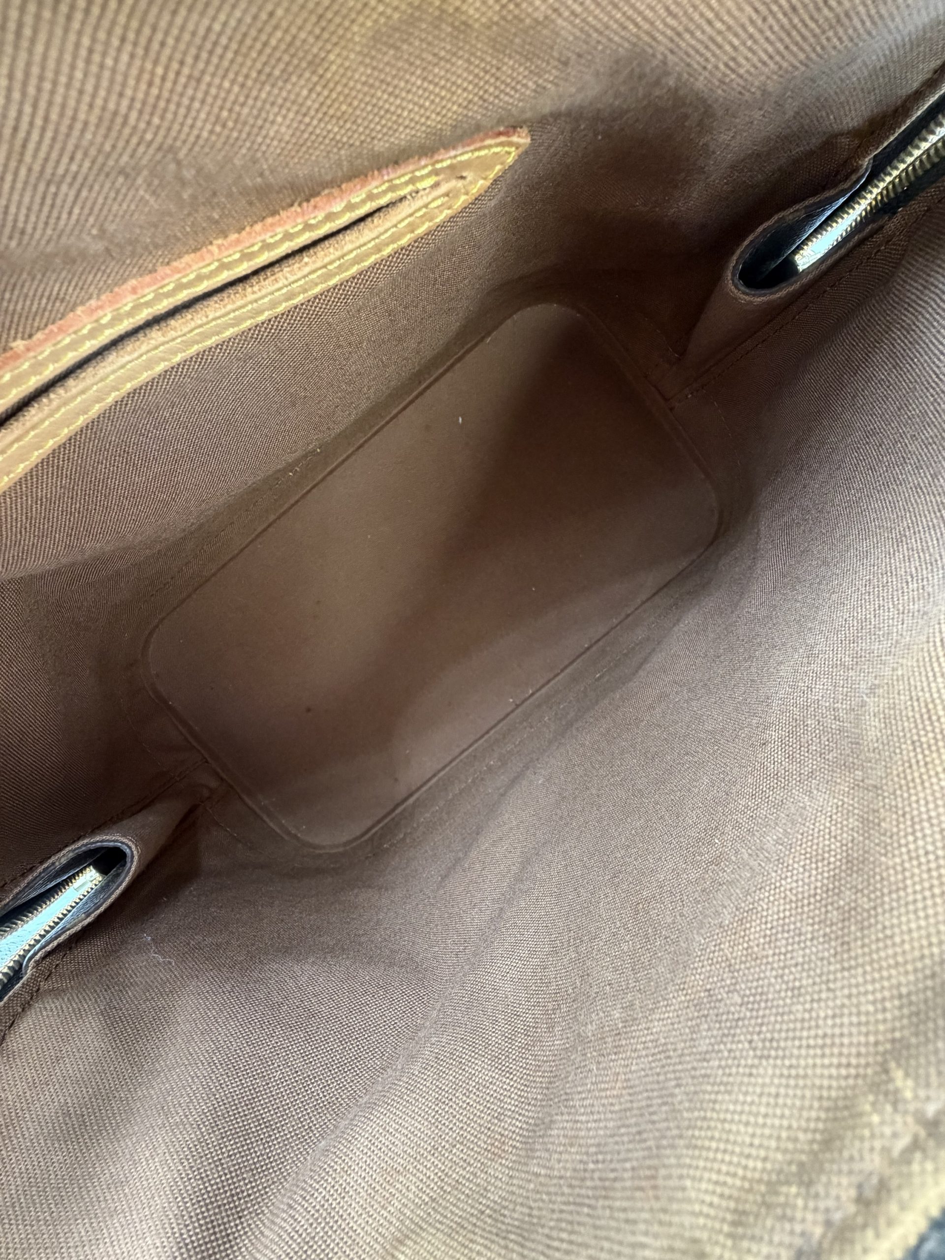 Denne version er udført i det ikoniske Monogram Canvas med smukke vachetta-læderdetaljer, som patinerer naturligt og gør hver taske helt unik.
