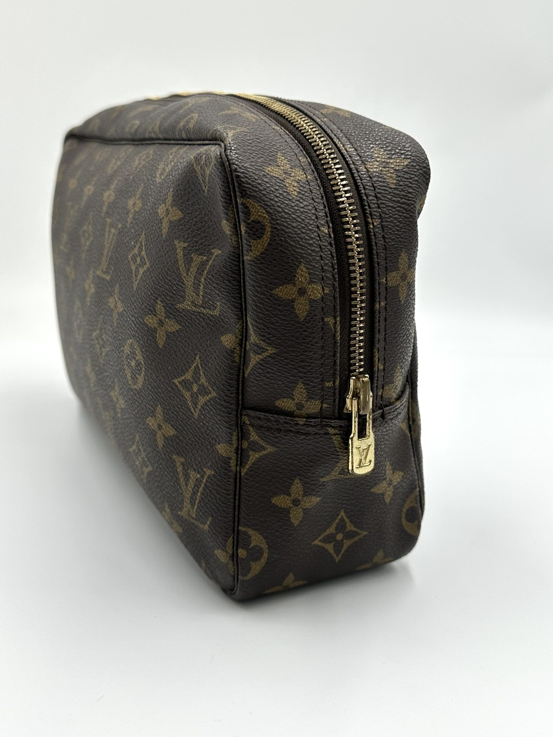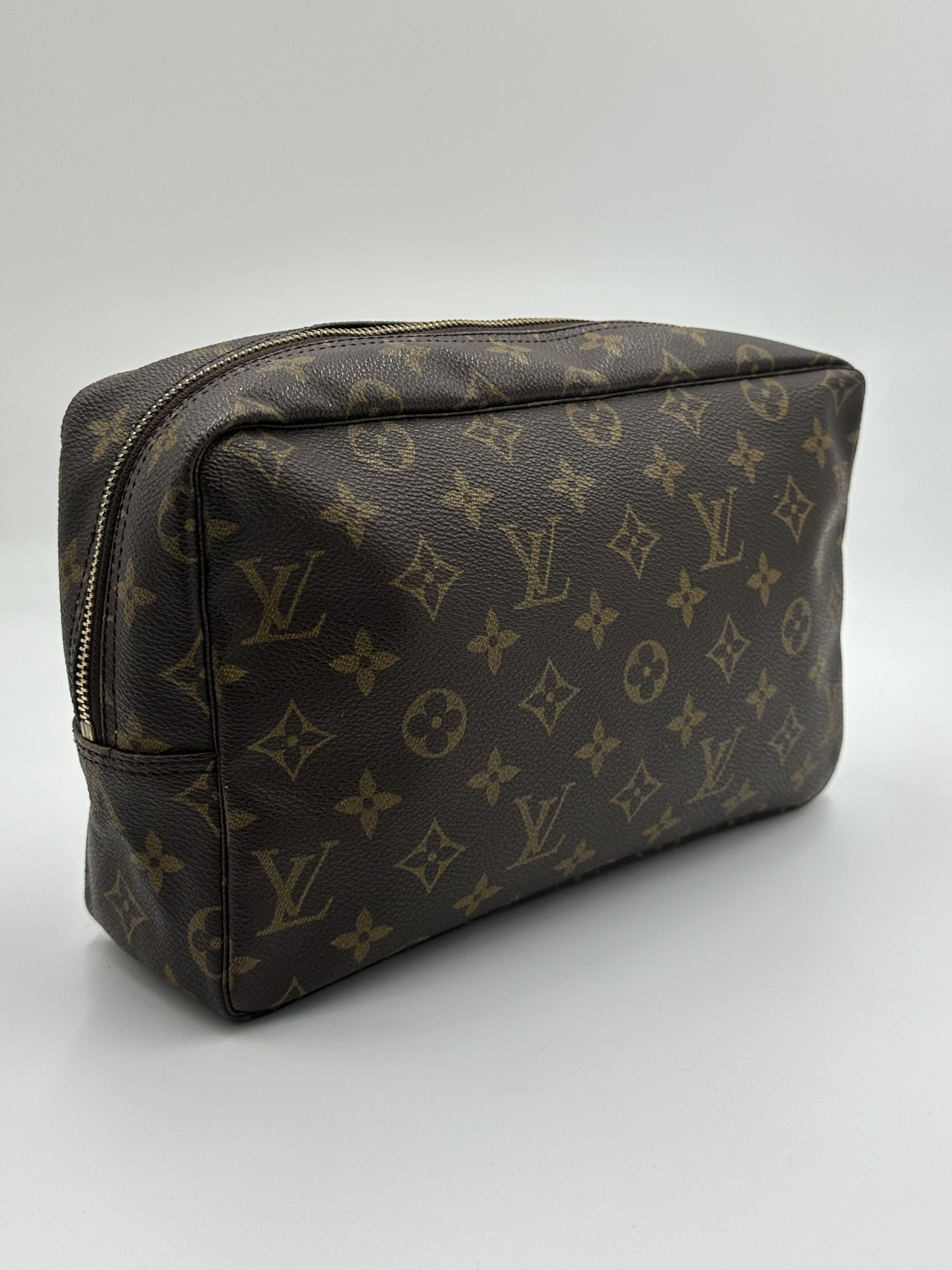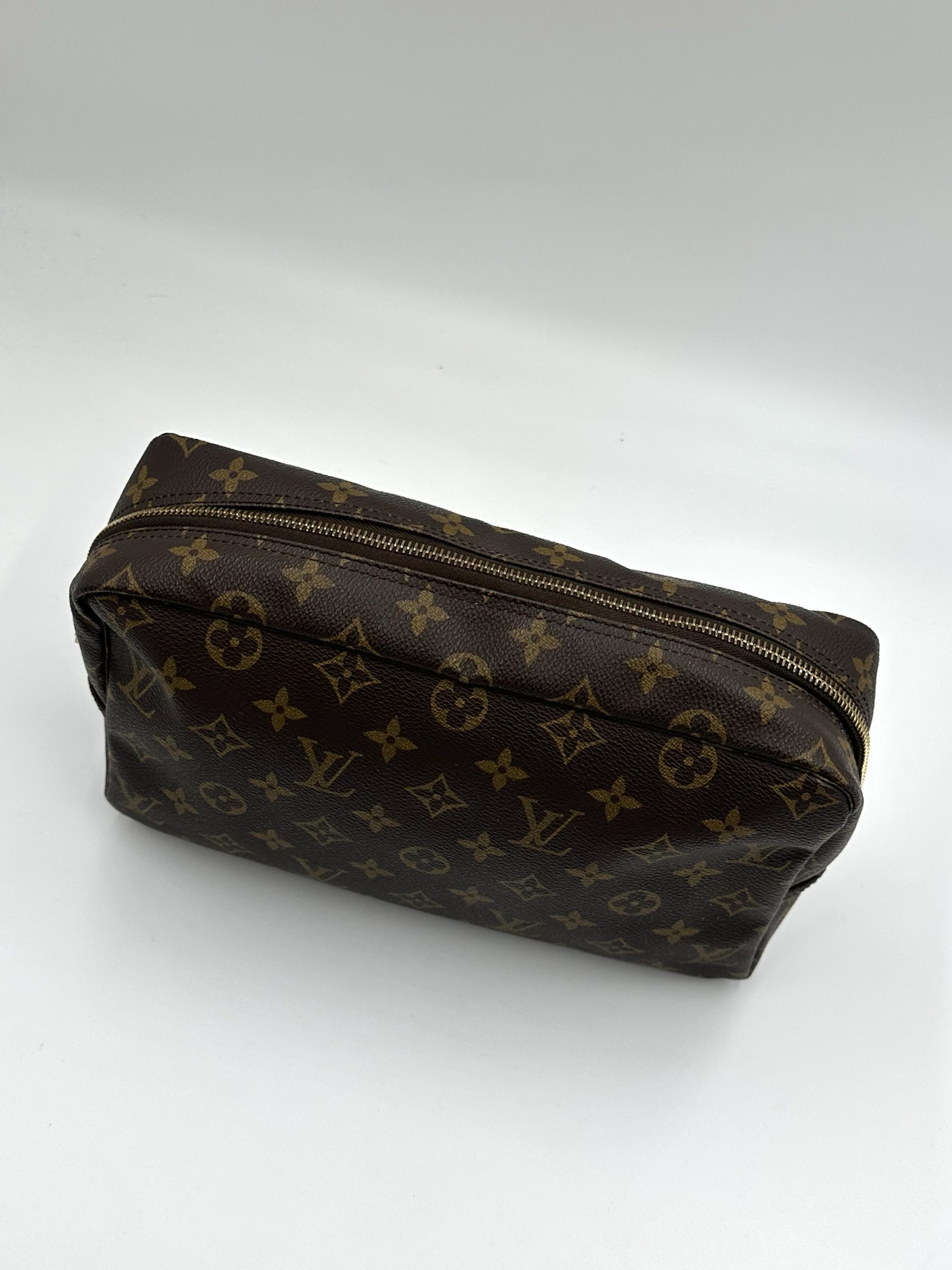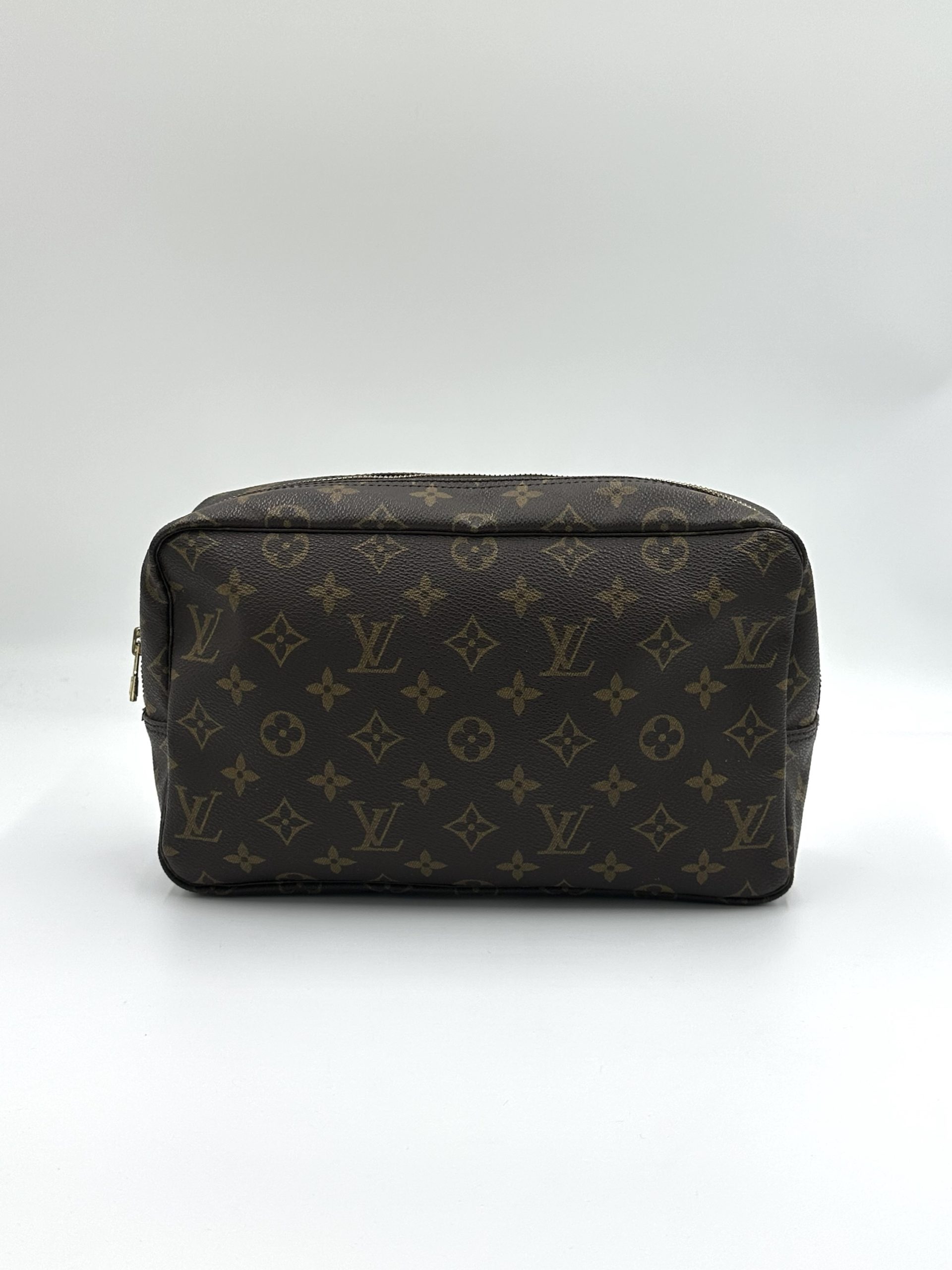 En klassisk og funktionel Louis Vuitton toilettaske i ikonisk Monogram Canvas – perfekt til både rejser og daglig organisering. Det robuste coated canvas, den enkle boksform og den rummelige indretning gør den til en uundværlig accessory for enhver, der elsker tidløst design.