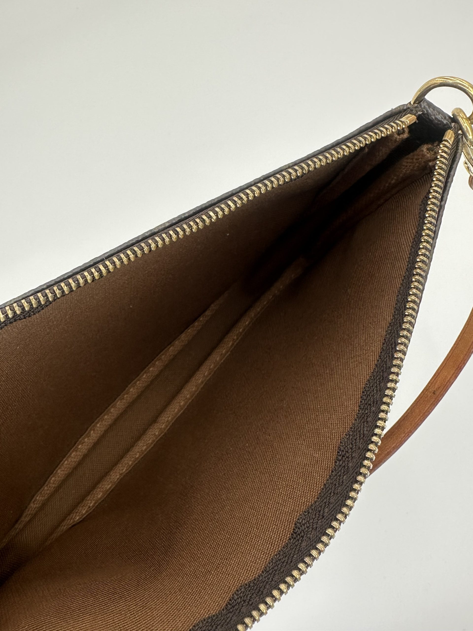Louis Vuitton Pochette Accessories er en af brandets mest ikoniske og eftertragtede småtasker. Den klassiske Monogram-version kombinerer tidløs elegance med maksimal funktionalitet, og modellen kan bruges som clutch, skuldertaske eller som en praktisk organizer i en større taske.