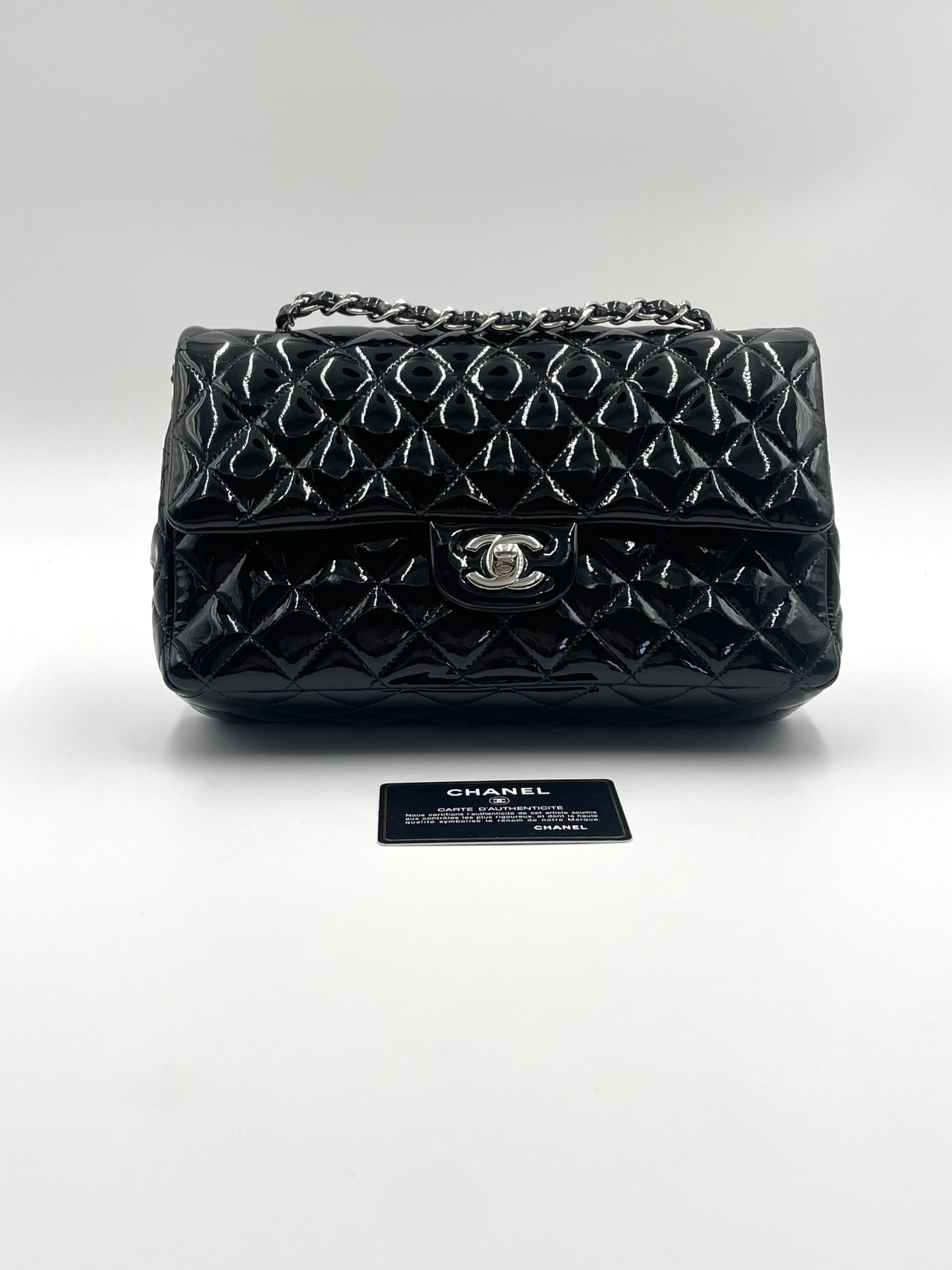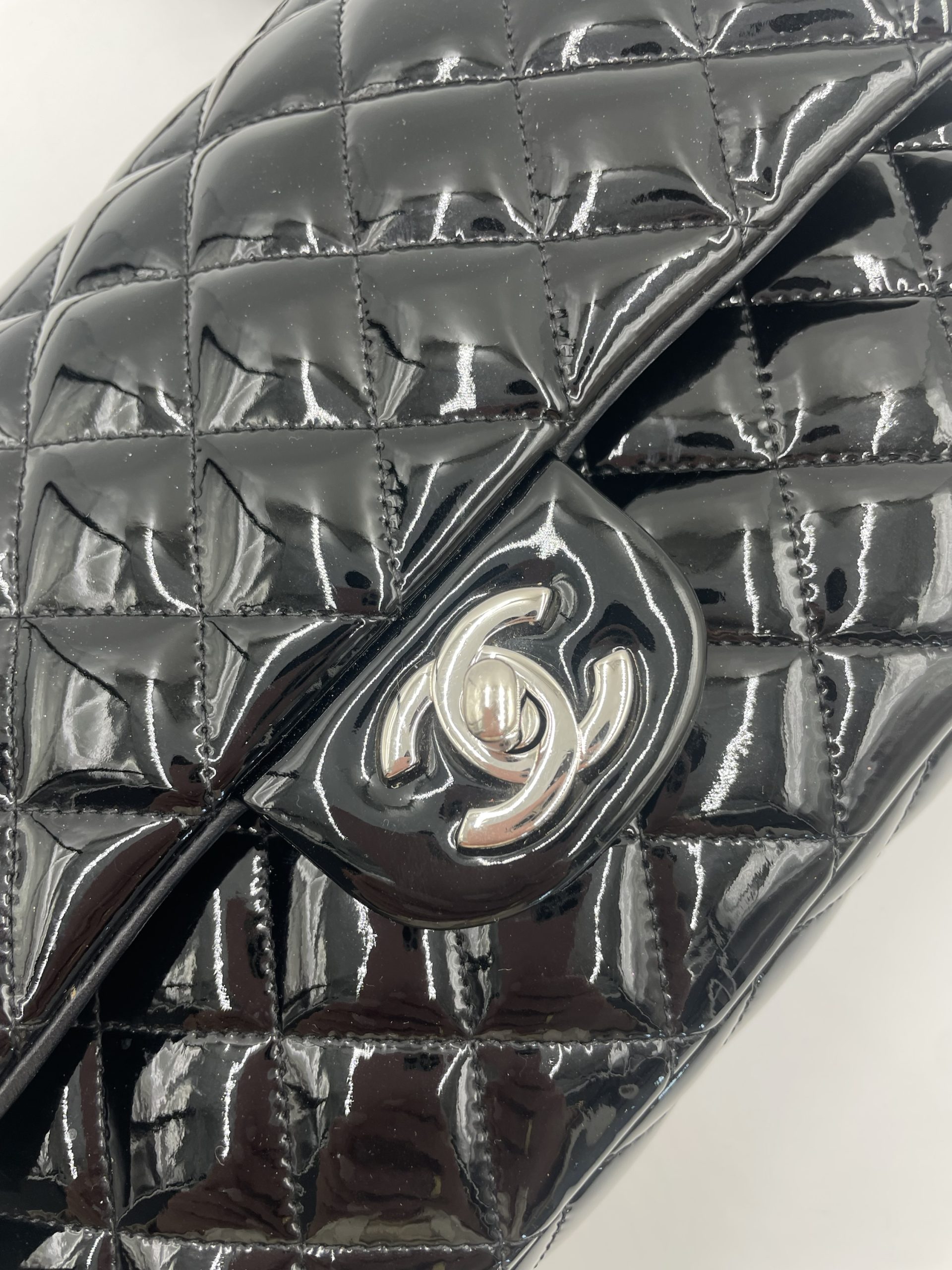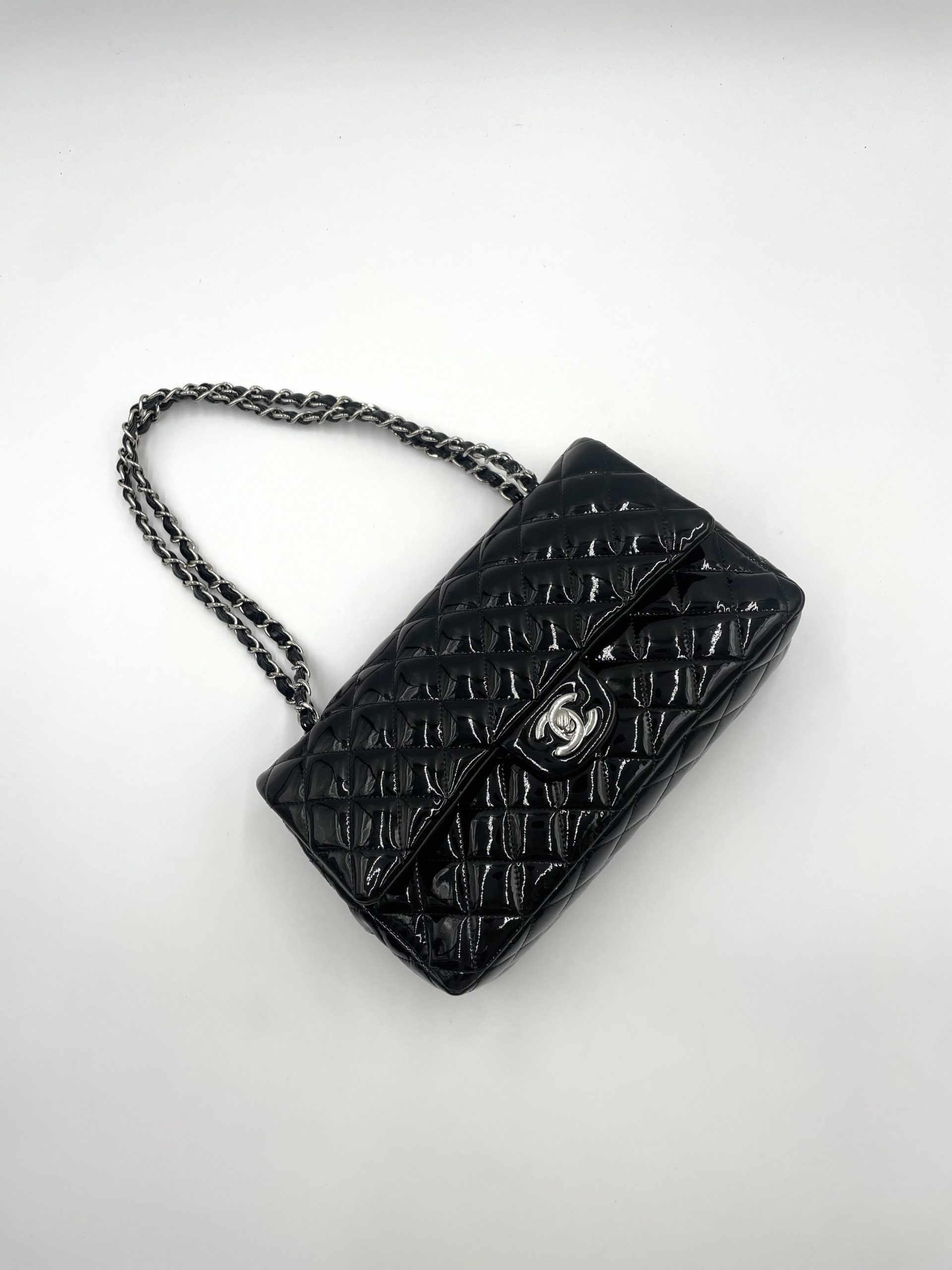 Den quiltede lakoverflade reflekterer lyset smukt og fremhæver de ikoniske detaljer som CC-låsen og den flettede kæderem – elementer, der har defineret Chanel siden 1955 . Samtidig er modellen en del af en af verdens mest eftertragtede taskeserier, der fortsat er blandt de mest værdifulde og populære på preloved markedet .